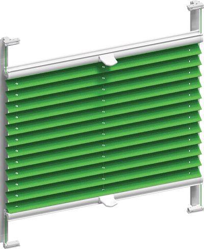 • Selbstbremsende Steuerung, mit der Sie das Plissee in jeder Höhe einstellen können.